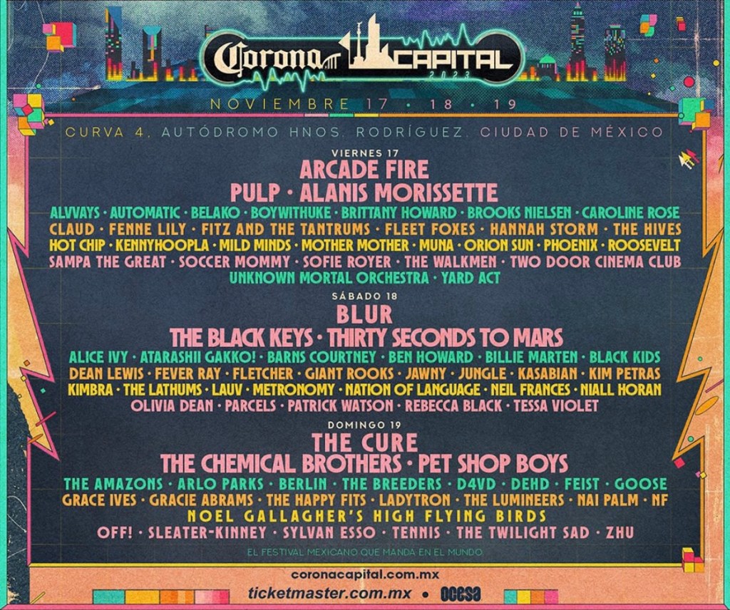 El Corona Capital presentará su décimo tercera edición, será en el Autódromo Hermanos Rodriguez del 17 de al 19 de noviembre en la CDMX